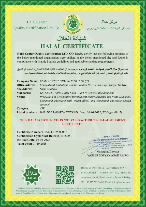 Elmas Sweet, tatlı ve atıştırmalık sektöründe üstün kaliteyi, yeniliği ve güveni bir araya getiren uluslararası bir markadır.