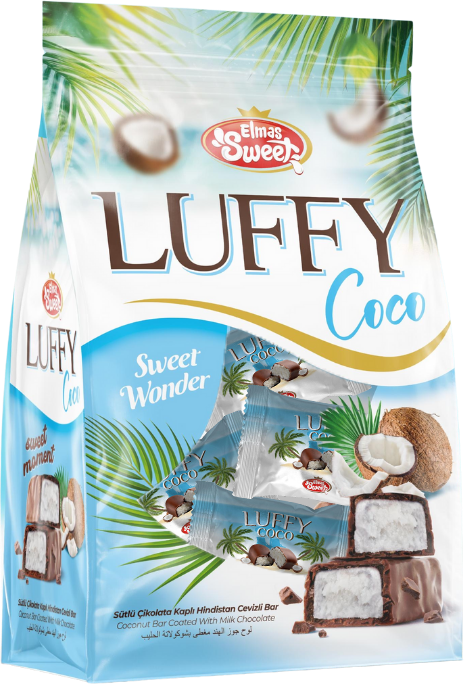 Gerçek hindistan ceviziyle hazırlanmış dolgu, sütlü çikolatanın zarif dokusuyla buluşuyor! Elmas Sweet Luffy Coco, ferahlatıcı tropikal aroması ve yumuşak yapısıyla tatlı bir kaçamak sunar. Her lokmada süt, kakao ve hindistan cevizinin mükemmel uyumu sizi bekliyor.
